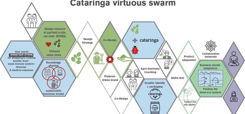 In 2016 inspired by my own needs (a food source that would complement my diet) and identifying consumer's trends of lack of time to shop and cook their own meals I launched a new product into the market; Cataringa (sanitized an pulverized moringa). Moringa is a new super food which strengthens our immune system and fights infectious diseases including cold and flu. From its conception, cooperation was at the heart of Cataringa, it was clear that establishing collaborative networks was going to be determinant for the successful commercialization of the novel product idea so I created alliances with a University, juice bars, vegan restaurants, gyms and fitness instructors to encourage a faster adoption of the product and brand recognition. This is a good example of when we do something purposeful and positive tends to be more powerful as it resonates with more people. Most recently we were looking to extend the product portfolio and created a lean canvas workshop to present a pitch deck to raise capital.
